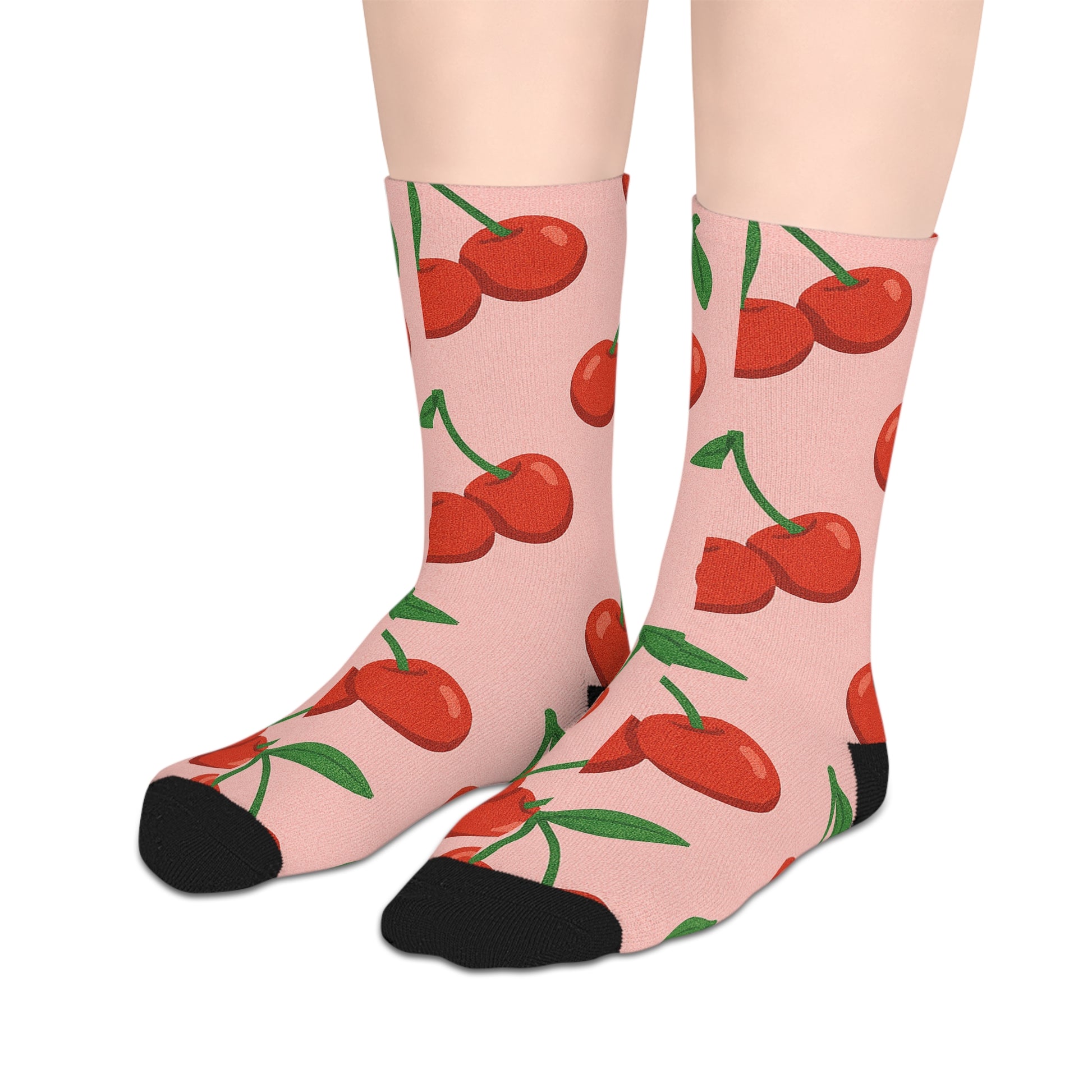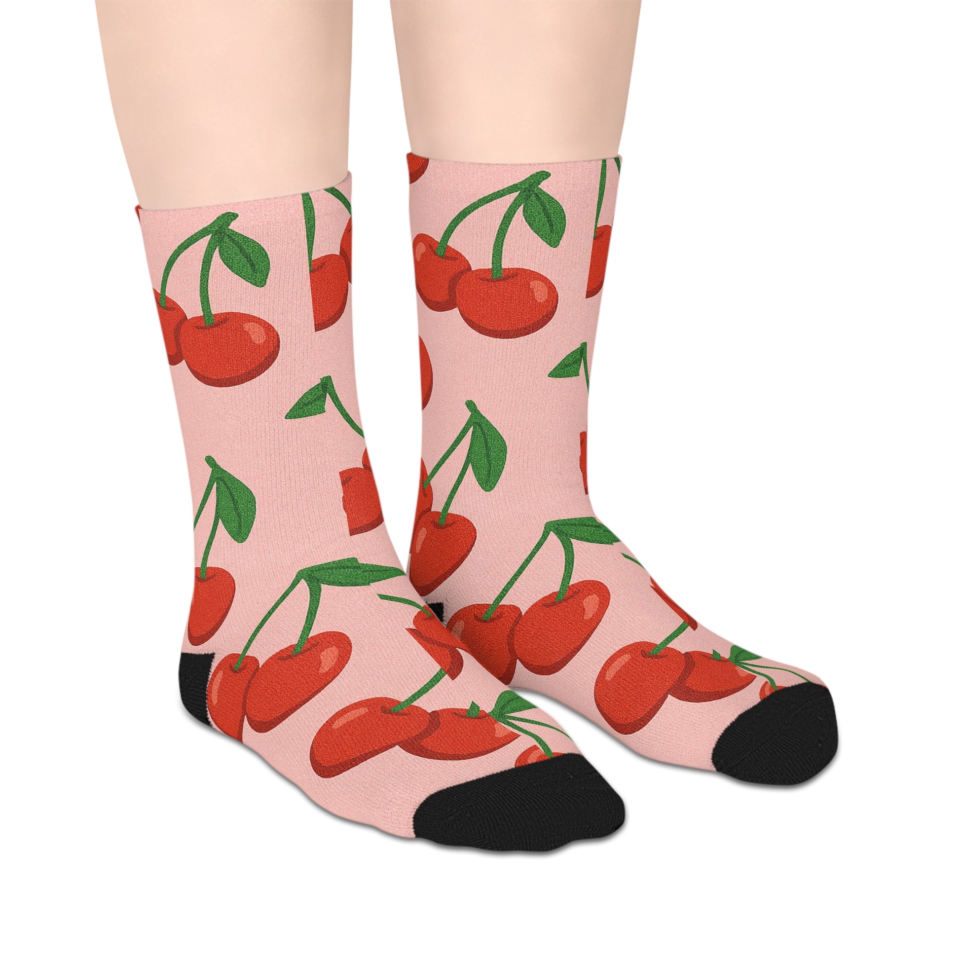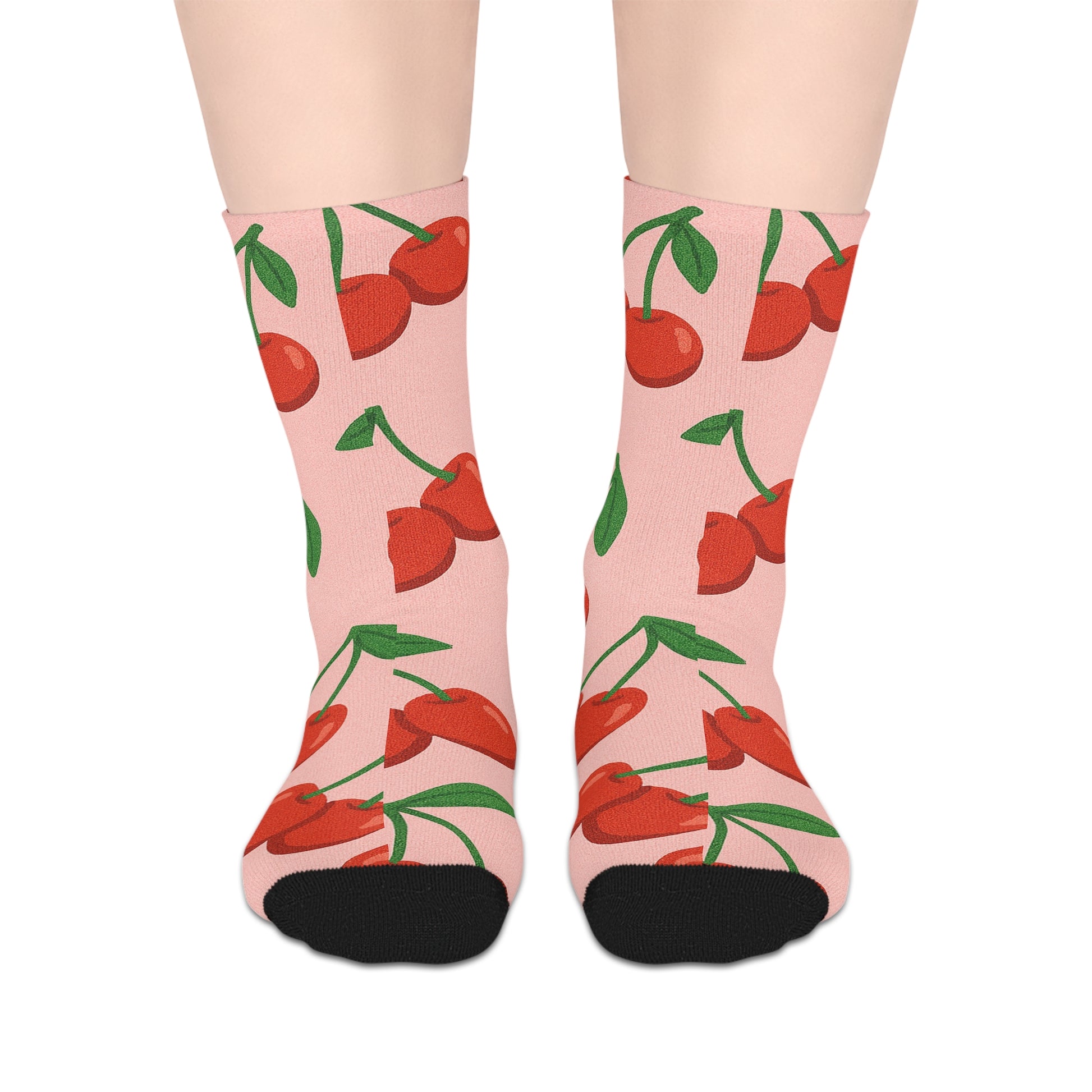 Step into comfort and style with these delightful mid-length socks, featuring an all-over cherry print that instantly adds a pop of color to your outfit. Made from 100% polyester, these lightweight socks are not only incredibly soft to the touch but also quick-drying and durable, ensuring they hold their shape wear after wear. Perfect for lounging at home or making a fun statement when paired with your favorite sneakers, these socks embody a playful vibe that brightens any day. Ideal for cherry lovers and those looking to express their unique style, these socks are great for casual outings, cozy nights in, or festive gatherings. Celebrate occasions like birthdays, summer picnics, or simply treat yourself to a touch of whimsy all year round!