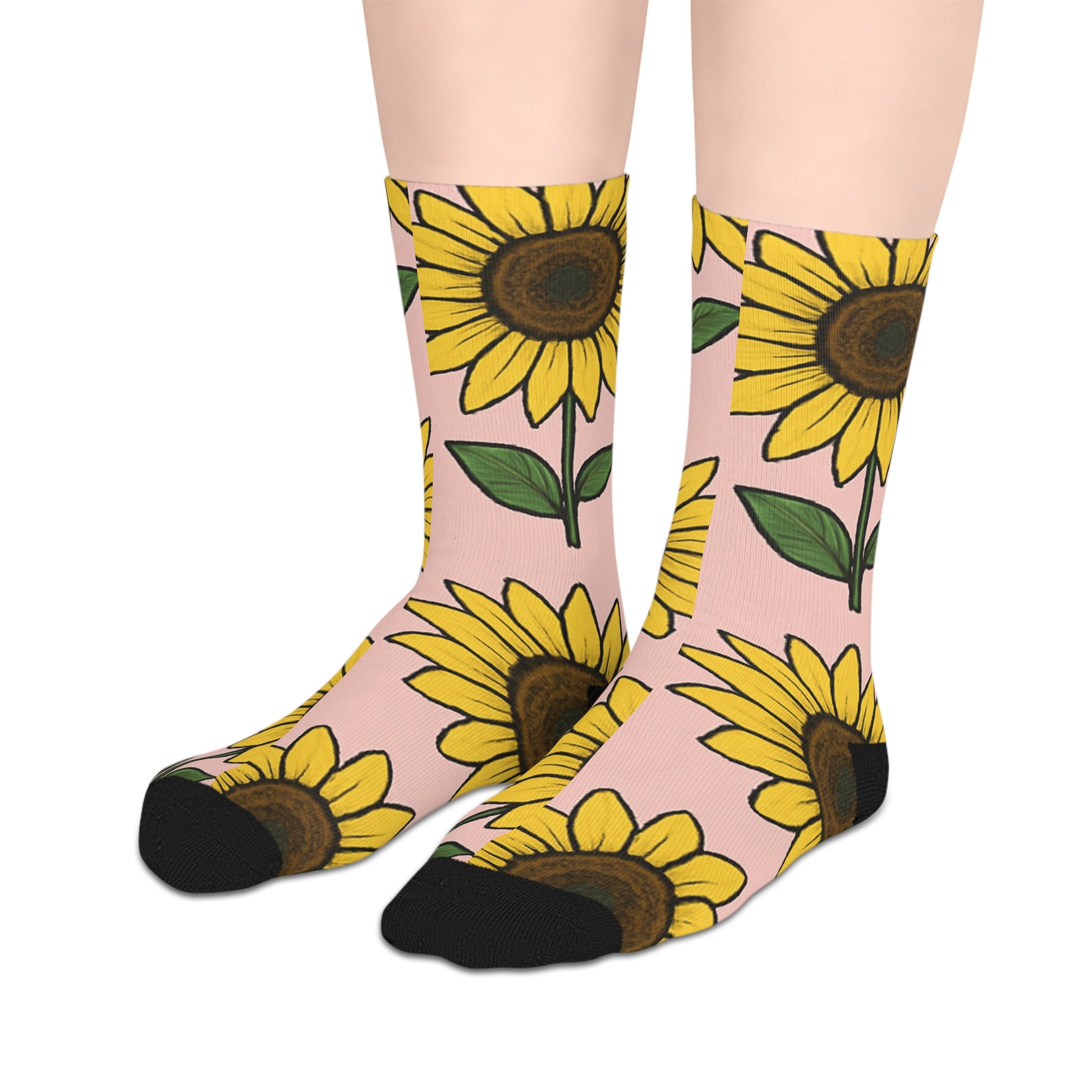Step into comfort and style with these vibrant mid-length socks! Featuring a cheerful sunflower design on a soft pink background, these socks are perfect for adding a splash of color to your everyday attire. The lightweight material feels great against your skin, making them an excellent choice for any season. Ideal for those who appreciate unique accessories, these socks are a fantastic gift for friends and family, especially during celebrations like birthdays, holidays, or just because! Express your personality and brighten your outfit effortlessly with these playful crew socks.